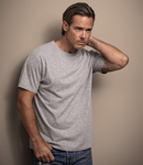 100% supercarded organic cotton. Narrow ribbed collar with elastane. Taped neck and shoulders. Tubular body. Twin needle stitching. Tear out label (in transition to be tag free).