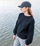 50% organic cotton/50% merino wool. Special order items are strictly non-returnable. Lead times vary. Fully fashioned knit. 1x1 ribbed collar, cuffs and hem. Balloon sleeves. Tag free.