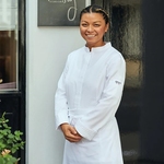 A chic and classic chef jacket. The CRISTAL women's chef jacket is part of the Prestige range and its 50% lyocell and 50% recycled polyester composition contains a non-crease coating. It has a stand collar, ultra-flat press stud front, cuffs with vents and press stud tabs with pintuck details. The shoulder princess seam creates a more fitted look whilst the side slits provide comfort and freedom to move. The stitching and LAFONT embroidery under the twin pen holder give the finishing touch to elevate this long-sleeve chef jacket designed for catering professionals. Also available for men.