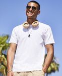 100% cotton.* Ribbed collar. Taped neck. Tubular knit. Twin needle stitching on sleeves and hem. Cut out label.