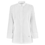 A chef's jacket with a sober and modern style. Made from 50% lyocell 50% polyester, the CRISTAL men's kitchen jacket from the prestige range also has a wrinkle-free treatment. It has an officer collar, a front closure with extra-flat press studs, slit cuffs and a press-stud tab with religious pleat details. The “small side” cutout forming a slight bend and the slits on the side aisles provide comfort and ease of movement. The finishing of the seams and the LAFONT embroidery under the compartmentalized pen pocket complete this long-sleeved kitchen jacket intended for catering professionals. Available in women's version.